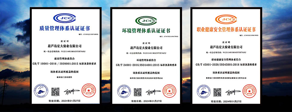各种高科技和高品质材料的门窗和阳光房系列,是公司现有的主打产品,在自有的“百创”注册商标下,总计包括了二十多个系列的分类产品。与德国、意大利等国际知名门窗行业品牌的战略合作及专利互授使用,行业战略合作伙伴提供的原材料与技术支持,使得葫芦岛宏大窗业有限公司在通过ISO9001、ISO14001、ISO45001三体系认证的同时,成功拥有了“中国绿色环保重点推荐产品”、“全国产品质量-信誉双达标企业”、“辽宁省AAA级诚信单位”、“中国门窗品牌百强”等众多殊荣。通过国内近百家直营门店、专卖店和经销商,百创高性能门窗真正地走入了千家万户,并受到市场和消费者的高度赞誉。