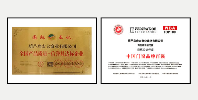 荣获《中国门窗品牌百强》称号