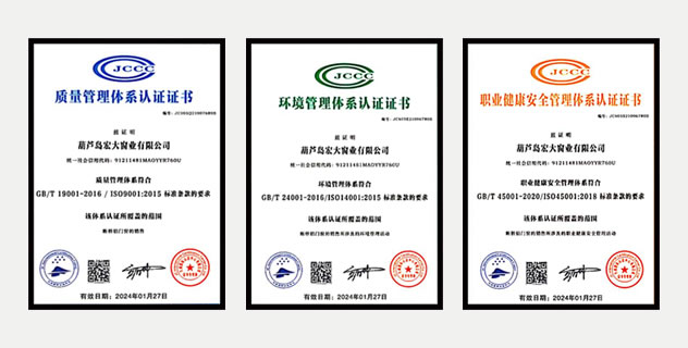 ISO9001、ISO14001、ISO45001三体系认证通过。