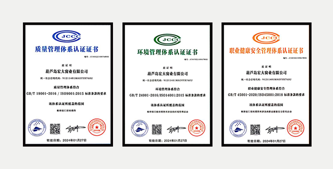 ISO9001、ISO14001、ISO45001三体系认证通过。